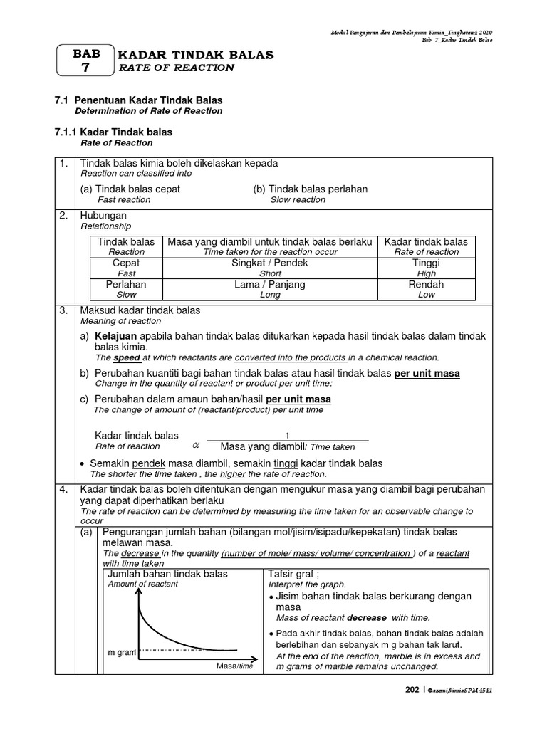 2020 Skema Bab 7 Kadar Tindak Balas Pdf Nitric Acid Reaction Rate